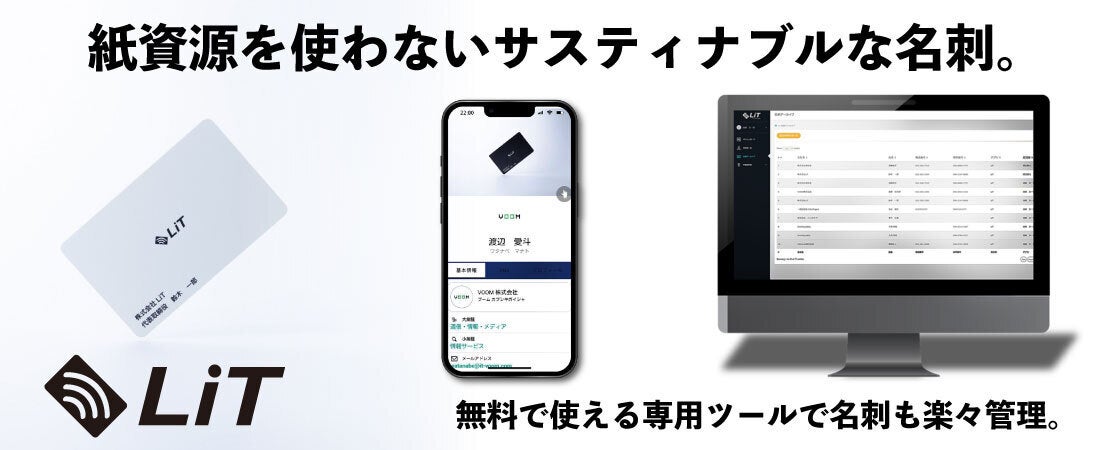 紙資源を使わない次世代名刺LiTの開発・運営を行っている宮城県仙台市に拠点を構えますVOOM株式会社と申します。
