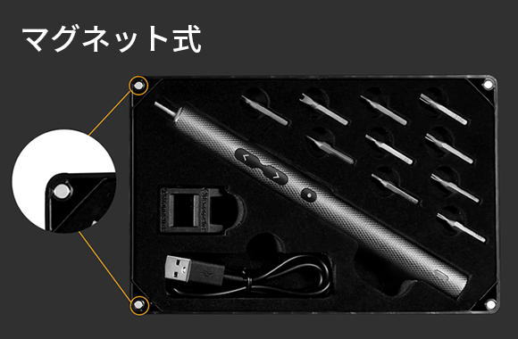 さらに、ビットの取り付けも着脱の便利なマグネット式を採用。ハンドルの先端に押し込むだけで装着完了。強力なマグネットのおかげで「Xcraft」を強く振ってもビットが落ちないので、スムーズに作業することが可能です。