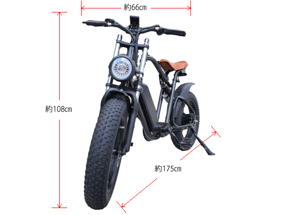 圧倒的なバイク感のフェイスは電動アシスト自転車と思わせない存在感を放ちます。