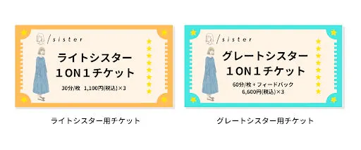 ・グレートシスター:1回60分 6,600円(税込、3枚ずつ購入可能)