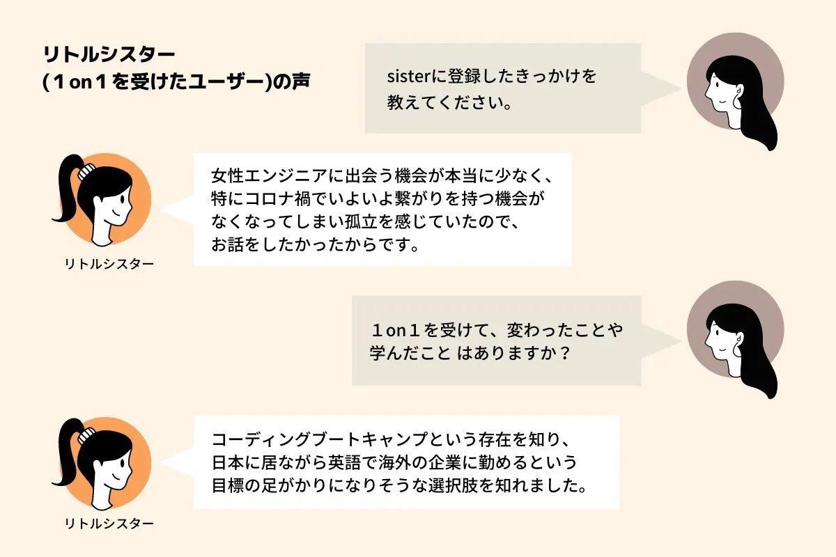実際に1on1をしたペアにsisterの感想をヒアリングしました。