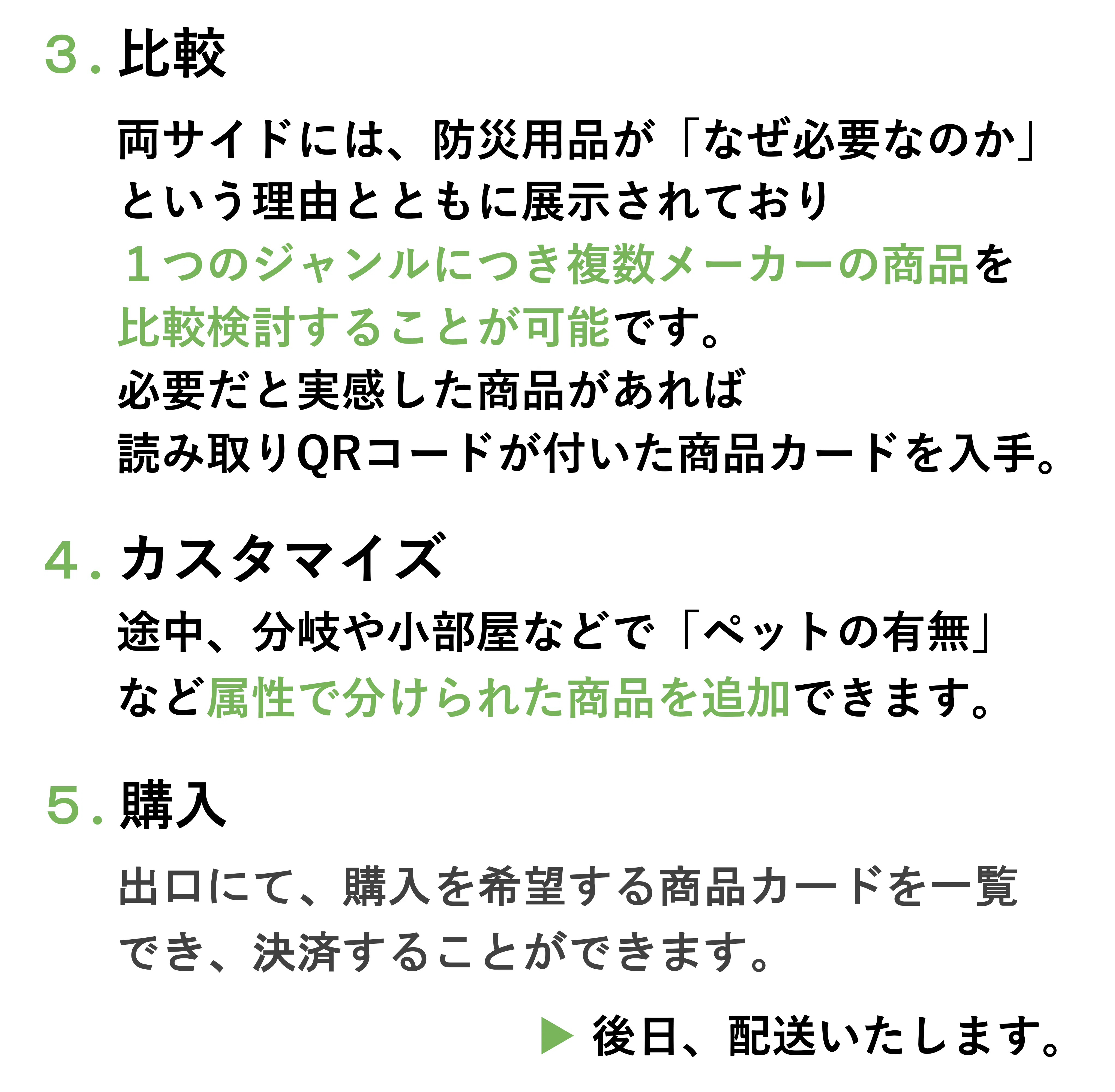 時間と場所を問わず、いつでも誰でも「大切な人に防災用品のプレゼント」することを可能にしていきます。