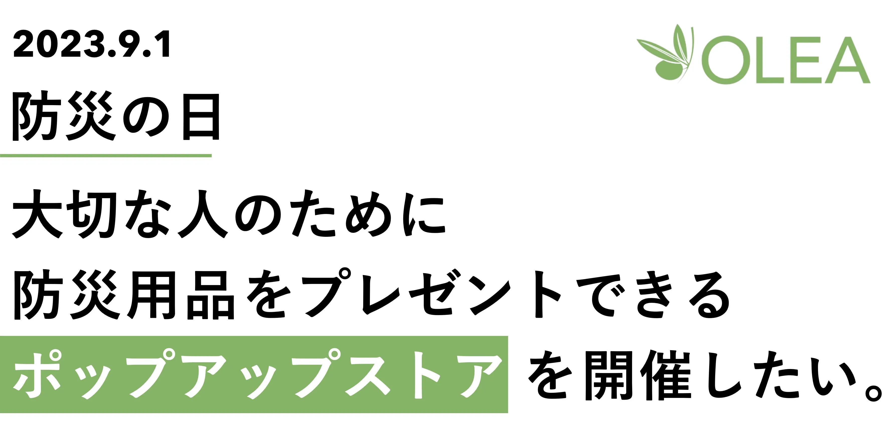 このたび、私たちは『大切な人に防災用品をプレゼントできるポップアップストア』を開催するプロジェクトを立ち上げることにしました。
