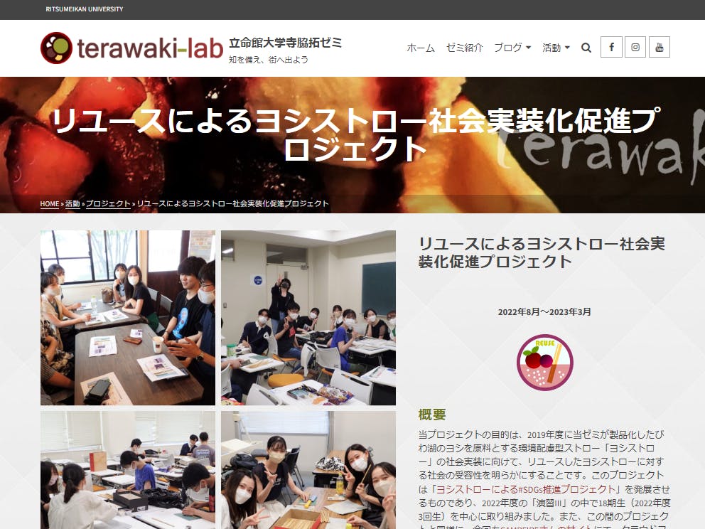 団体名:立命館大学経済学部寺脇拓ゼミ リユースによるヨシストロー社会実装化促進プロジェクト