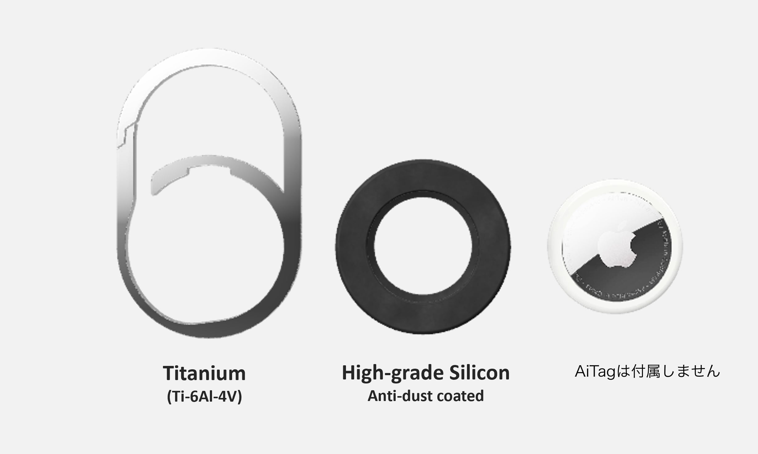 ロケットや航空機の材料にも使われる64チタン合金(Ti-6Al-4V)を採用することで、どんなアクティビティでも耐えうる防錆性と高強度を実現しながら、重量はわずか17g(AirTag除く)と軽さと強さを両立させました。