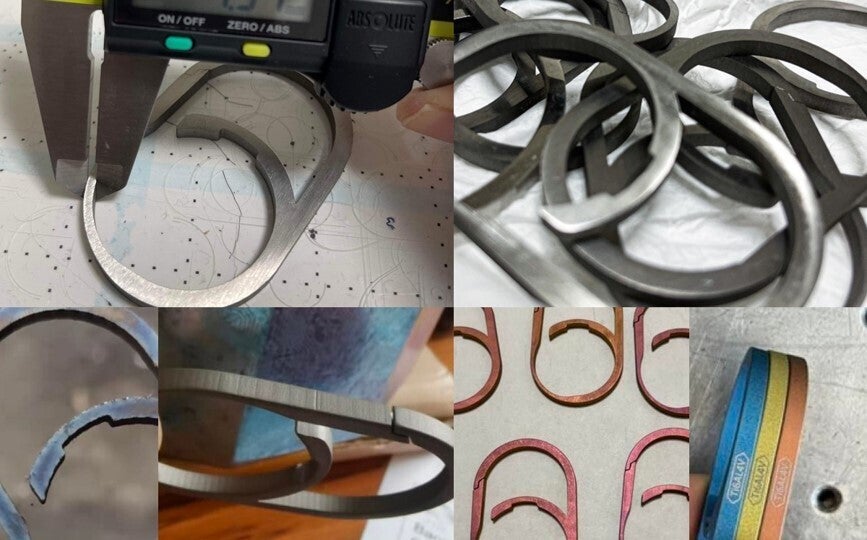 以下は製造の苦労話になってしまうのですが、”シンプルな構造は、複雑さを乗り越えた”とも言われるのですが、それを体感したプロジェクトでした。特に、金属部品の選定と加工方法に難航しあきらめかけました。一般的に軽く強度があり入手性の良い材料となると航空機などに用いられるジュラルミン(アルミニウム合金)でも、計算上繰り返しの変形に耐え切れないため、チタンを使えないかと考えました。しかし、チタンは高級な材料で、その中でも64チタン合金となると材料が高いだけではなく高強度なため加工方法も限られることがわかりました。海外のクラウドファンディングで、64チタン合金を使ったカラビナ見つかりましたが非常に高価で、「コスト的に64チタン合金は無理なのかな、、、」と思い日々を過ごしていました。ある日、気分転換に友人と食事へ行き、そこで紹介頂いた工場なら小ロットでも64チタン合金が扱えるかもとのことで、さっそく相談をしてみました。チタン合金に対する知識と経験が豊富であり、難易度の高い形状でも品質確保ができる可能性があるということで試作を実施しました。苦労の末、出来上がった試作品は、課題は多いが製品になりそうな確かな手ごたえを感じるものでした。その後も、チタン合金の中でも特に強度の高い64チタンゆえの加工難度の高さから加工品質の安定化に苦戦し、特に表面処理を何度も何度もやり直し、試作品が数十個を超えたところでようやく現状の仕上がりにたどり着きました。AirTagを保護するシリコンゴムにも、長年ご使用いただけるように、医療用グレードの高耐久シリコンゴムを採用し、さらに汚れにくいアンチダストコートを施しました。