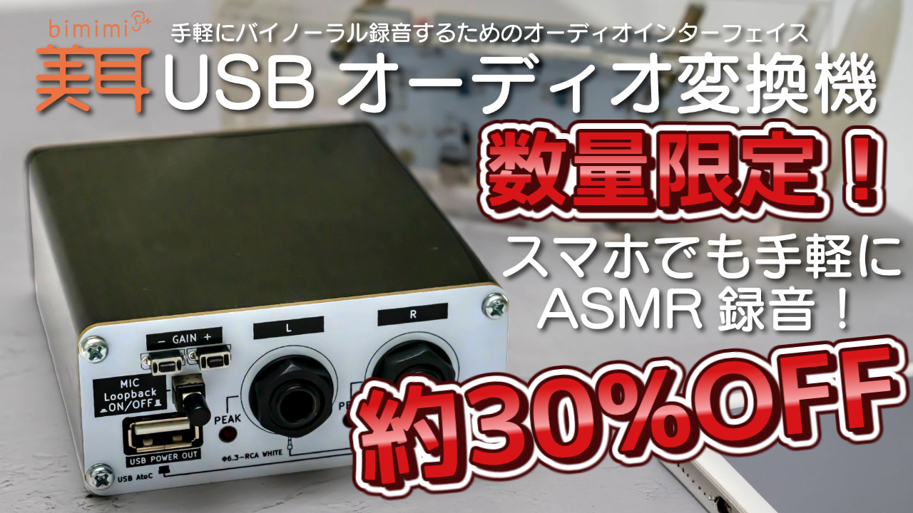 2025/07/02 10:42皆様! 熱中症などかかっていませんでしょうか! バイノーラル音声をUSB-C入力で!PC・スマホで使える 美耳 USBオーディオ 変換機 CAMPFIRE緒戦中です!https://camp-fire.jp/projects/832208/view 浅見ゆい様のシチュボ風紹介映像も公開しています。すでに美耳を支援していただいた方にも本クラウドファンディングのご支援をいただいております! 誠にありがとうございます!!! しかしながら目標額にまだ届いておらず、恐れ多いのですが皆様の応援をいただきたいです! 実はプレスリリースをあまりWEBメディアに取り上げていただけず、本プロジェクトの存在が世に知れ渡っておりません。お手数おかけしますが、動画の再生やSNSでの拡散を手伝っていただけると大変ありがたいです!お友達に対しても紹介してもらえると嬉しいです! 一般想定価格よりお求めやすくなっております! 美耳 を通じて成し遂げたいのはバイノーラル・ASMRクリエイターの倍増です。 だれでも「明日ASMR配信したいなぁ」と思ってすぐに実行出来る世界を目指しています。 その一環としてスマホユーザをメインに本製品を作りました。 拡散、支援してもらえると嬉しいです! よろしくお願いします!!! もっと見る美耳の関連製品が近日登場!