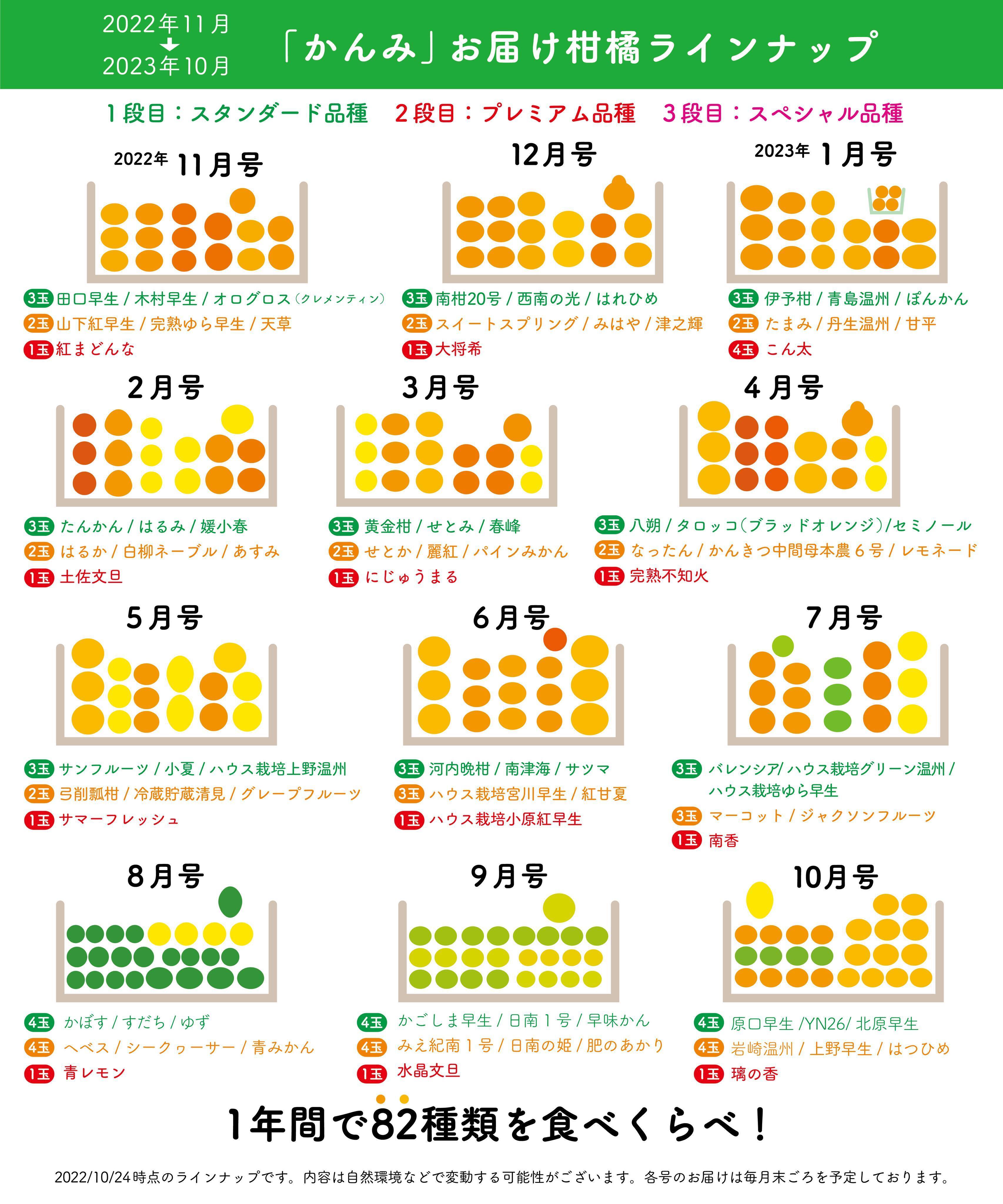 2022年の『かんみ』の大きな特徴はお届けする品種の多さと提供期間の長さ。