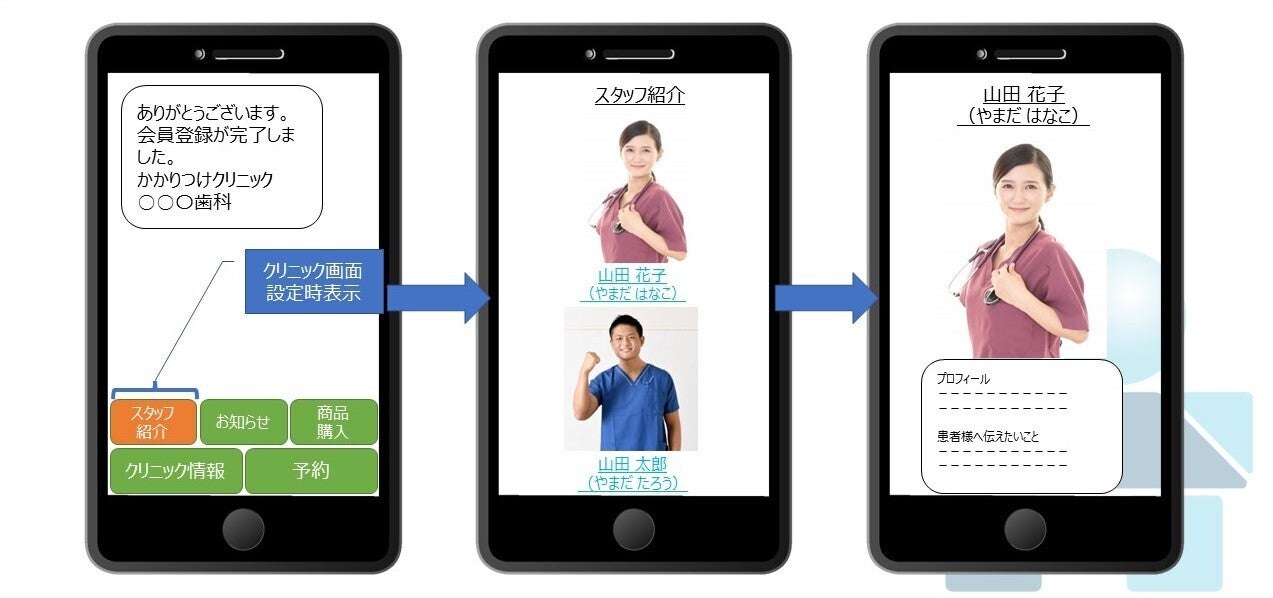 など、ユーザーはスマートフォンで簡単にクリニックを探すことができて、気に入ればかかりつけクリニックとして登録すればさらに便利に!