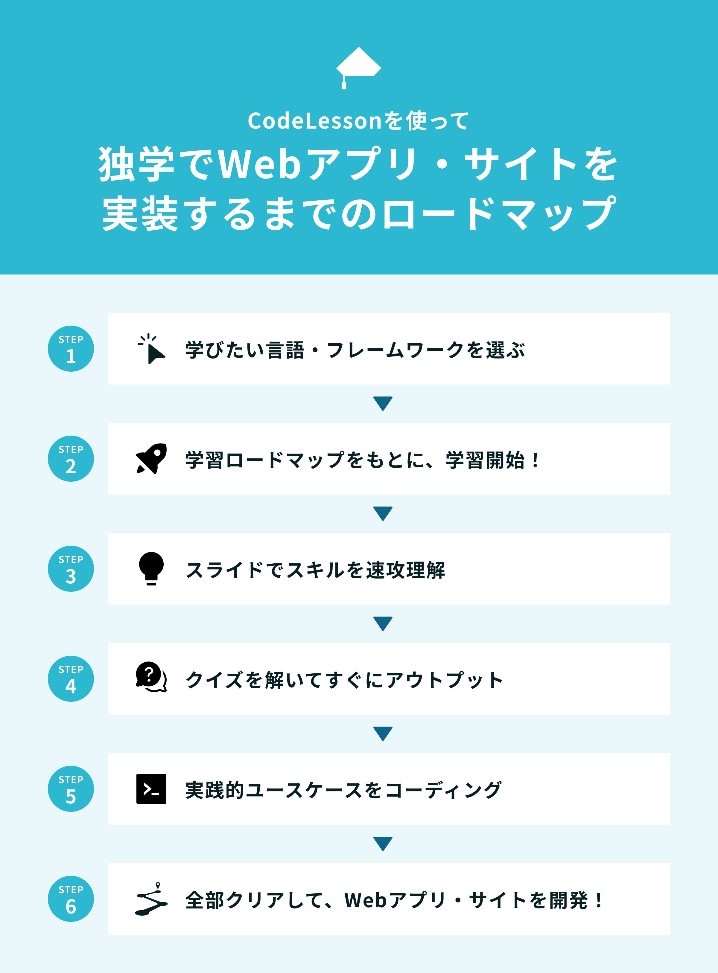 次に、CodeLessonでは具体的にどのような流れで学習を進めていくのか、学習ロードマップをもとに解説します!