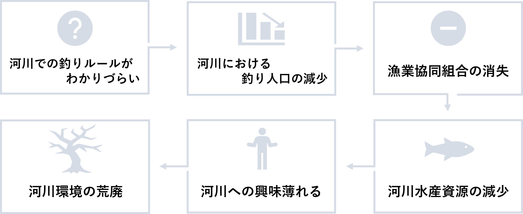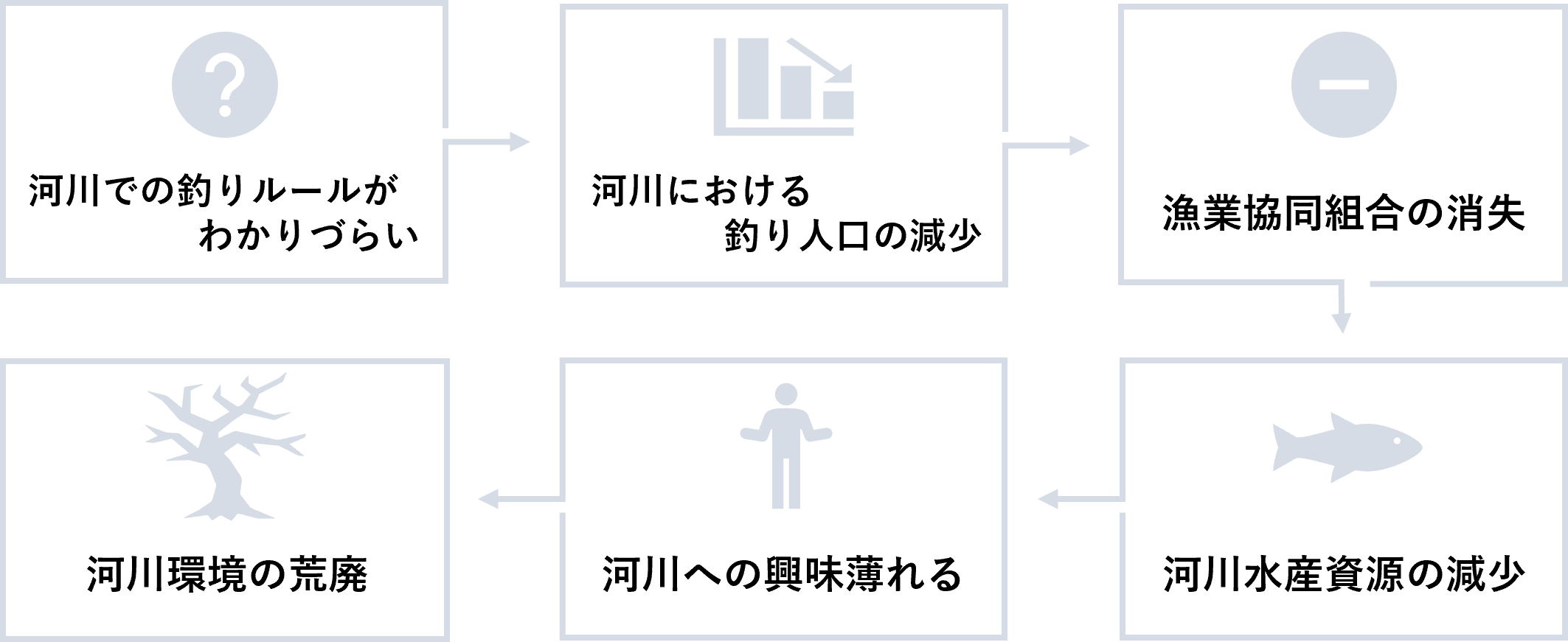 負のサイクルを止めて、将来の世代が河川・湖沼で釣りを楽しめる環境を残せるように。その第一歩として、「川釣りルールマップ」を作成します。