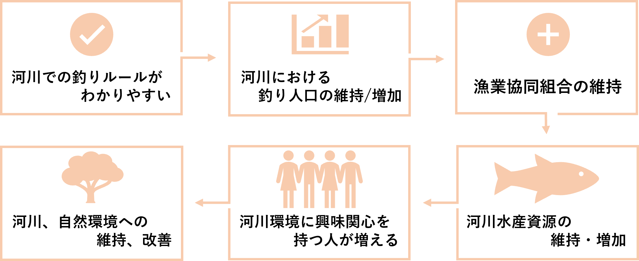 この川釣りルールマップのゴールは、川や湖での釣りを楽しむ人を増やすこと、適切に利用する人を増やすことです。