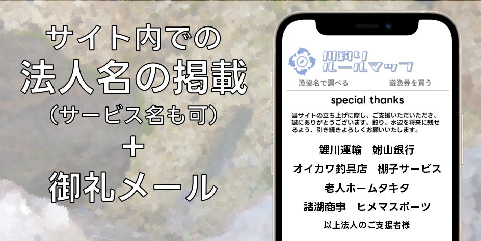 支援者様から支援していただいた資金は、「川釣りルールマップ」の制作資金として使用させていただきます。