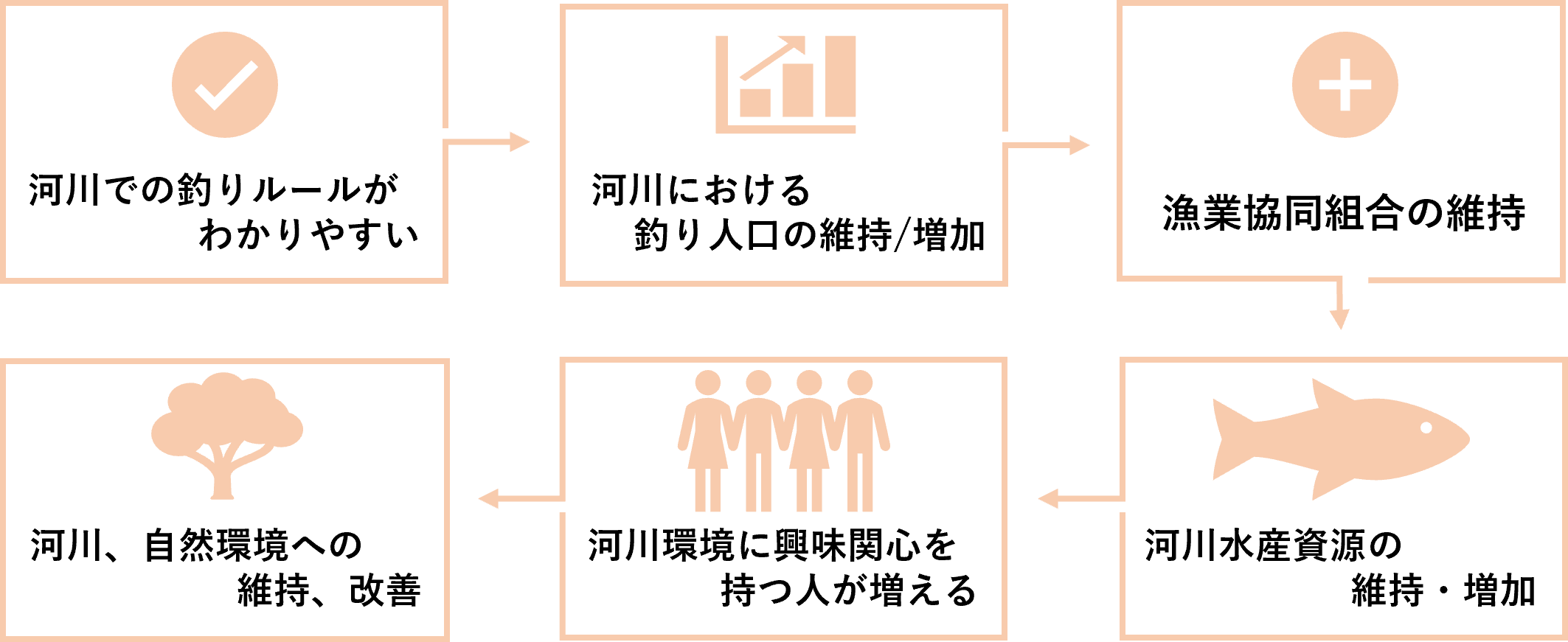 この川釣りルールマップのゴールは、川や湖での釣りを楽しむ人を増やすこと、適切に利用する人を増やすことです。
