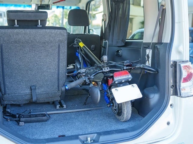 車の荷台にも入るサイズなので、キャンプや旅行先でキックボードに乗り換えて、買い出しやドライブなんてことも可能です。