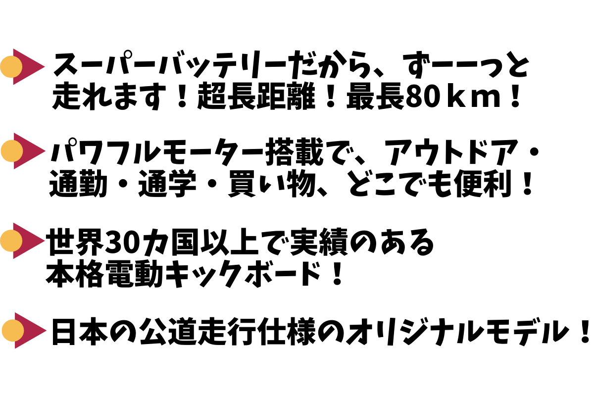 ▼スーパーバッテリーで最長80Kmの超長距離走行が可能!