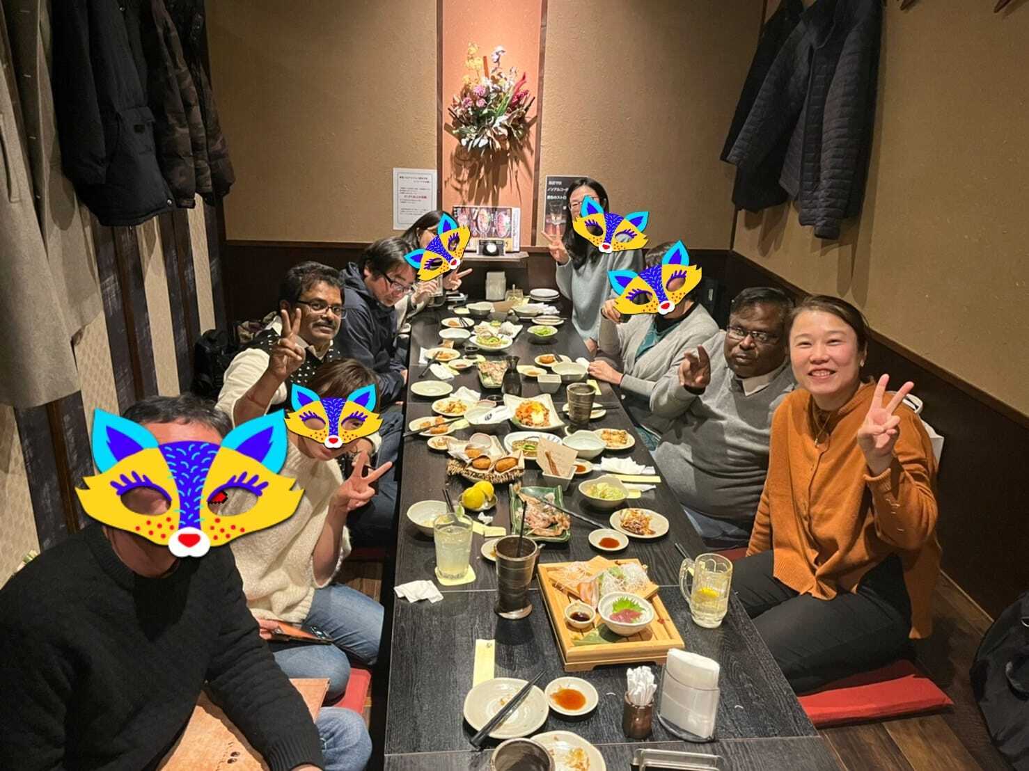 2023/01/12 15:08皆様こんにちわ!一昨日、ギリギリ滑り込みでインドメーカーさんと前職の(株)フレンズヒルさんとの飲み会に参加致しました!いつも11月に来日するのになぜ?と聞きましたところ、VINOBA(写真左)さんの娘さんが結婚されるという事で結婚式の招待をするために来たとのことでした。20年前、コントローラー(写真右)の娘さんの結婚式に参列して大変感動しました。どんなところがというと、寺院での何日間にもわたる結婚式で誰でも来て参加して良い。(なので寺町にはそこで食事をするために住んでいる人々さえいます。)披露宴の余興でその時同行していた上司が歌を歌う流れになり、瀬戸の花嫁を歌いだしたところ、少し聞くとブラスバンドが演奏し始めて、どんどんアレンジも聞かせてものすごく盛り上がったなんてこともありました。又、皆裸足だし、シカだとかサルとか牛等そこら中にいます。それから、電気の無い村の割合が高い。昼間ただただ歩いている、座って話をしている男性が町にあふれている。等々カルチャーショックがすごくてインド出張ではめちゃめちゃ良い経験をさせてもらいました。今回はVINOBAさんの娘さんの結婚式の招待状を頂きました。子供達のことを考えるとすごく良い経験になるだろうなぁと思いつつ、結婚式の次の日娘たちの期末試験...。そしてその週の週末は息子のサッカーチームのお友達家族と山梨バスツアーが...。突然すぎるーっ!めぐり合わせが合えば行く流れになると思いますが難しかったら何か日本の良いものを送りたいなぁと思っていまーす♡今回のお席では、フレンズヒルのインドからの船便に混載させてもらえる可能性あるかどうか?(スケジュール感も含め)聞いたりしておりました。近々にわかると思います。又、報告あげます!良い一日をー(⌒∇⌒)追伸:メーカーさんと私以外で狐がついていないのは、うちの夫ですW もっと見る