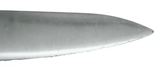 例えば、安価な包丁や、アウトドアナイフなど特殊な形/サイズの刃の場合、刃付けが極めて先端だけのケースや、17°以上の角度に刃付けされていることがあります。