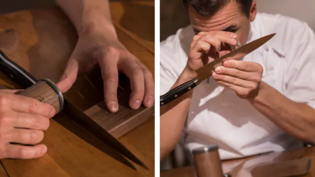 一方、ロールシュライファーは、包丁を固定し、研ぎ器を動かすことによって研ぎます。