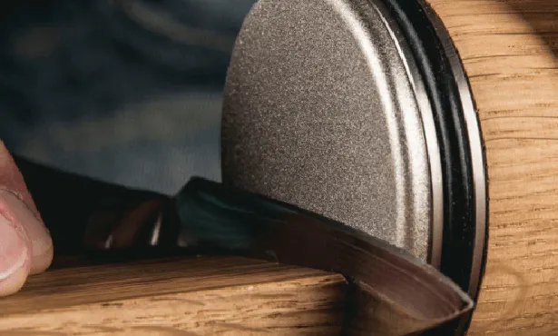 ロールシュライファーのデフォルトの砥石は、ダイヤモンド砥石です。ダイヤモンドは、包丁に使われる全ての素材(ステンレス・鋼・セラミック等)より硬く、正しく使えば、壊れることも磨り減ることもないので、半永久的に使えます。