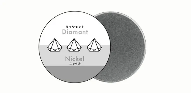 採用したダイヤモンドの砥粒は46µm(マイクロメートル)、日本では、荒砥〜中砥 とされる粒度ですが、ダイヤモンドをピラミッド型にカットし、それをニッケルに埋め込む独自の技術により、滑らかで鋭い切れ味に仕上がります。