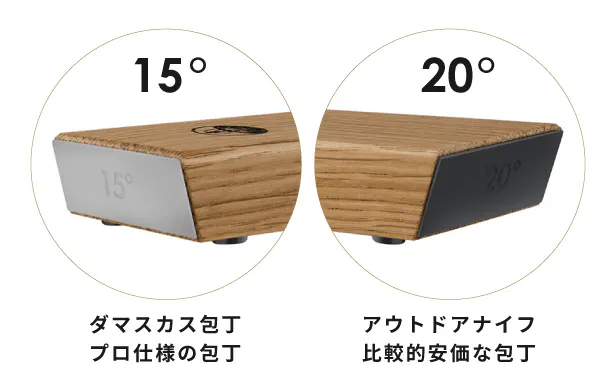 プロ仕様の包丁、ダマスカス包丁、鋼の包丁など、特に高品質な包丁の場合は、15°に固定して研ぐことをオススメします。