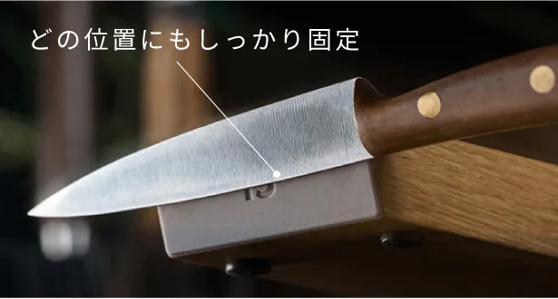この進化により、小さい刃用の面を設置しなくても、大きい包丁も小さい包丁もシリコンパッド面のどの位置にもしっかり固定することができます。