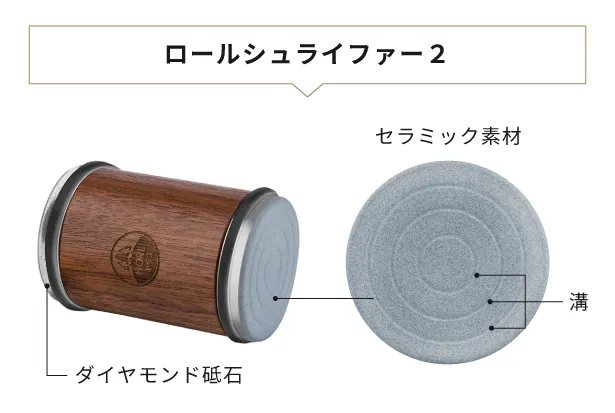 ロールシュライファー2は、ホーニング盤の素材を、ステンレスからセラミックに改良しました。