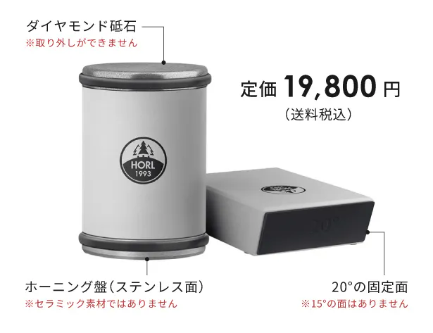 A はい、デフォルトのダイヤモンド砥石とホーニング盤(ステンレス又はセラミック)は、全てのセットに付属しています。別途ご購入いただく必要はありません。