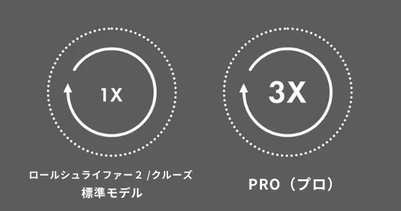 同時にスクロールした時の、回転の速さが明らかに違います。これは、PRO(プロ)だけが備え持つ遊星歯車の働きによるものです。ロールシュライファー2 PRO(プロ)は、標準モデルの3倍速で回転します。