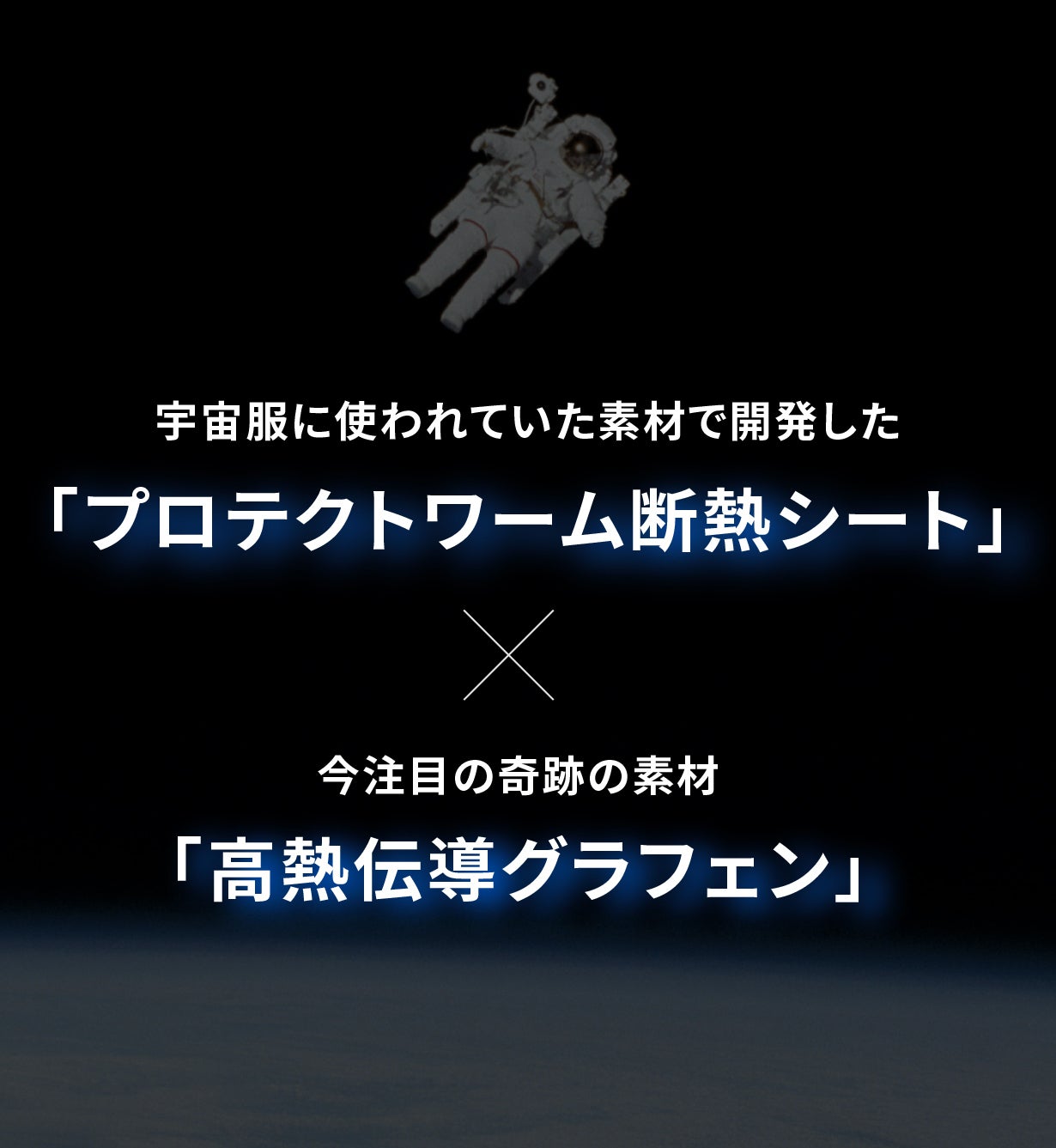 宇宙服素材とは:プロテクトワーム断熱シートは、宇宙服に使用されている素材のうちの一つ、テクロン生地を使用して開発されております。