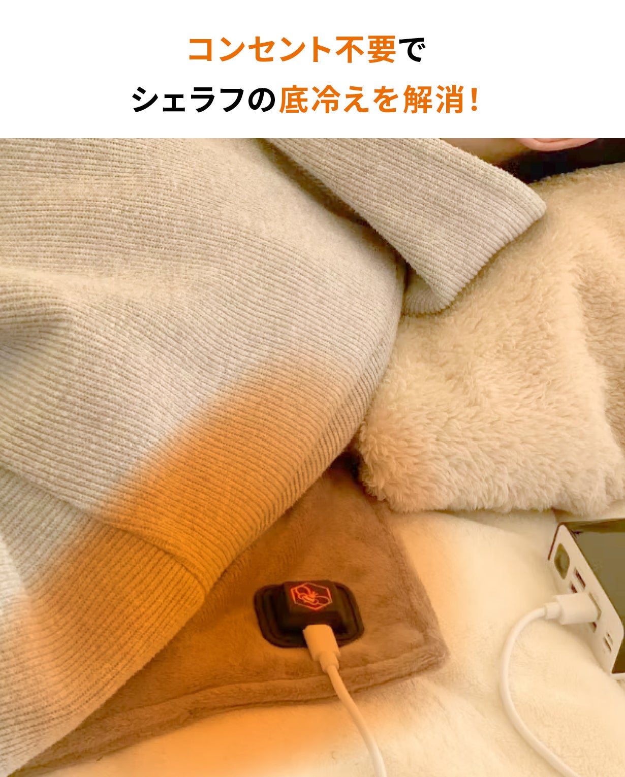 モバイルバッテリーで電源を気にせず設置できるので各々の寝床で温まることができます。