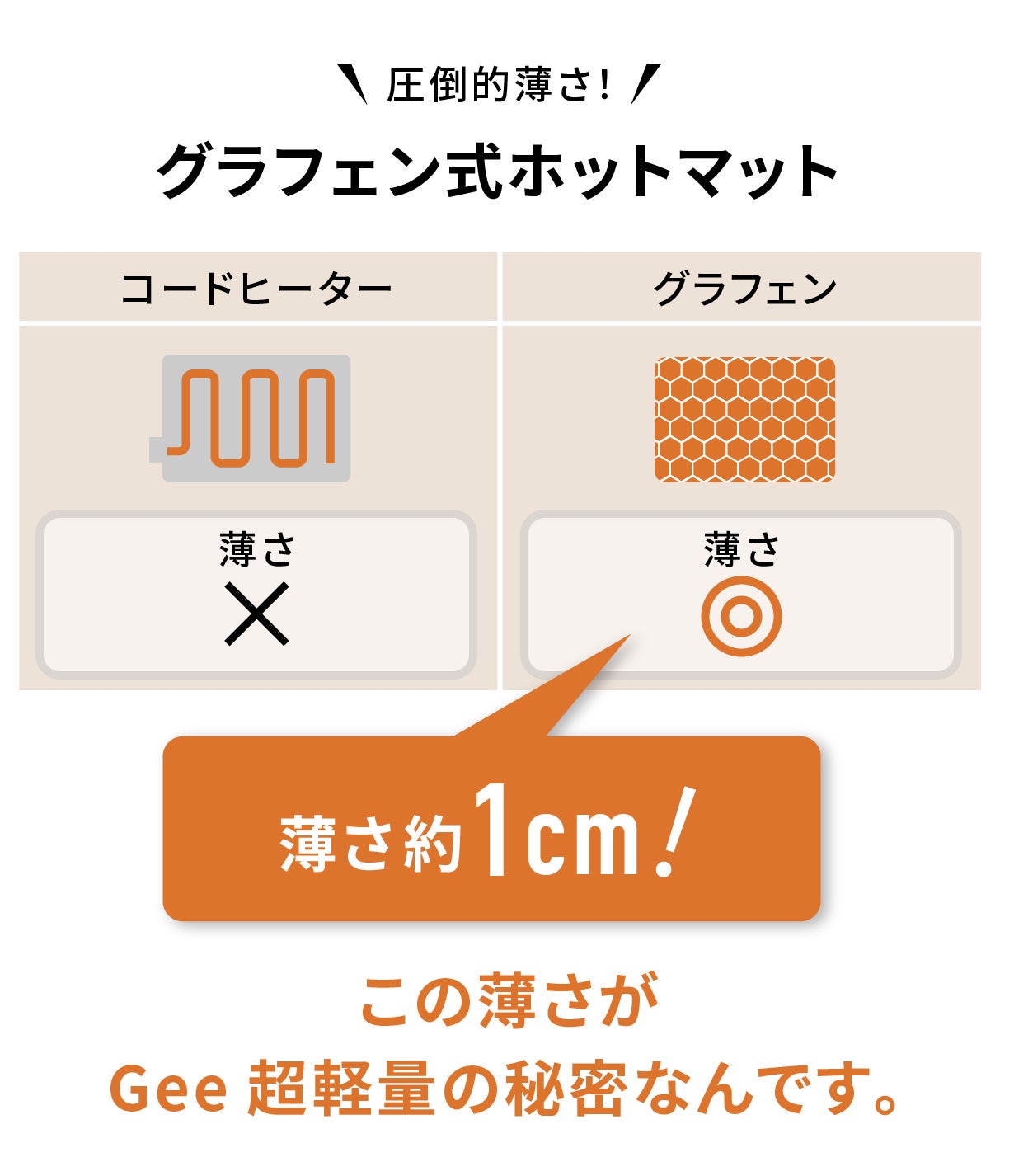 Geeと組み合わせてもコンパクトな上、発熱防止設計なので邪魔にならず安心して夜Geeであったまりながら眠ることができます。