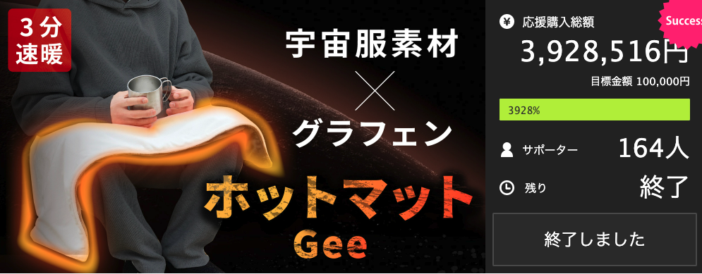 そんな際、キャンプ場でどんな状況でも手軽に暖かくできる商品を探していた時、グラフェン素材でできた「Gee」と出会いました。