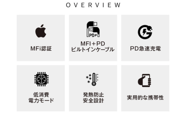 Appleが認めた製品にのみ使用できる「MFi」の認証!を取得し最大4つの機器を同時充電ができるスタイリッシュなモバイルバッテリーです。
