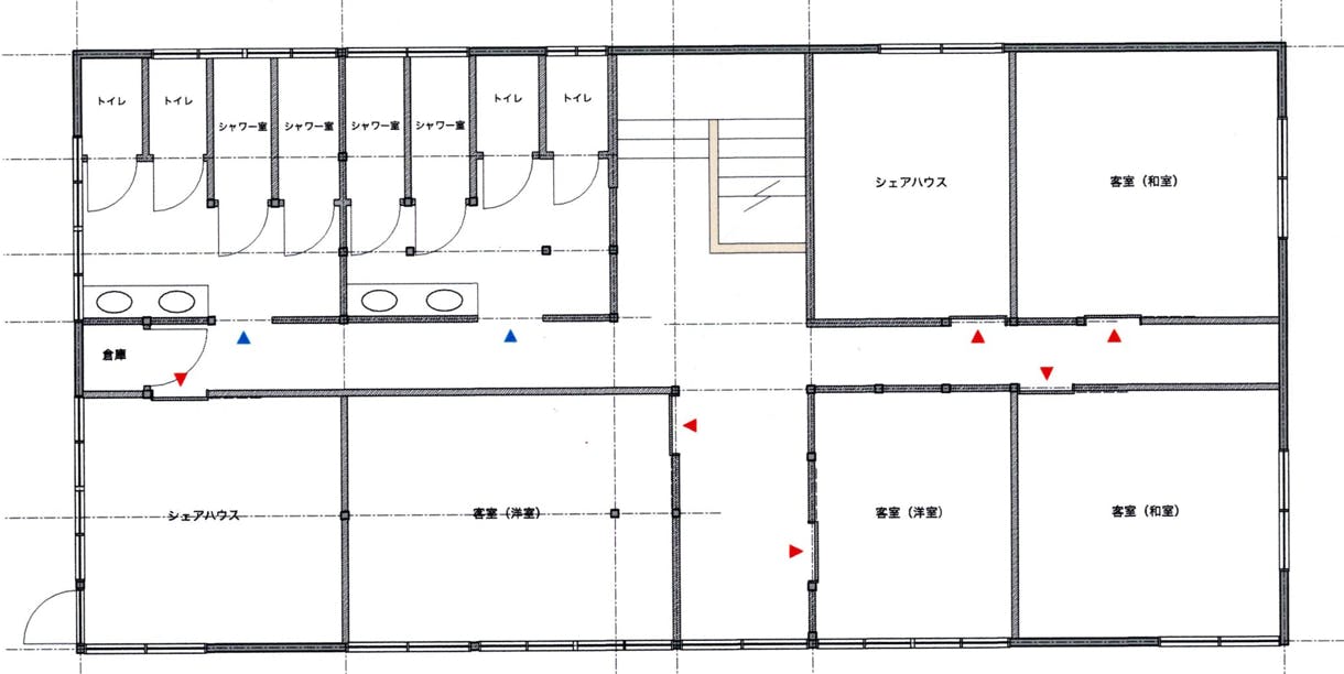 これから2階のゲストハウスの改装に取り掛かります。ゲストハウスの内容は洋室4部屋、和室(8畳)2部屋、男女のシャワー室、トイレ室それぞれ2つづつを計画しています。