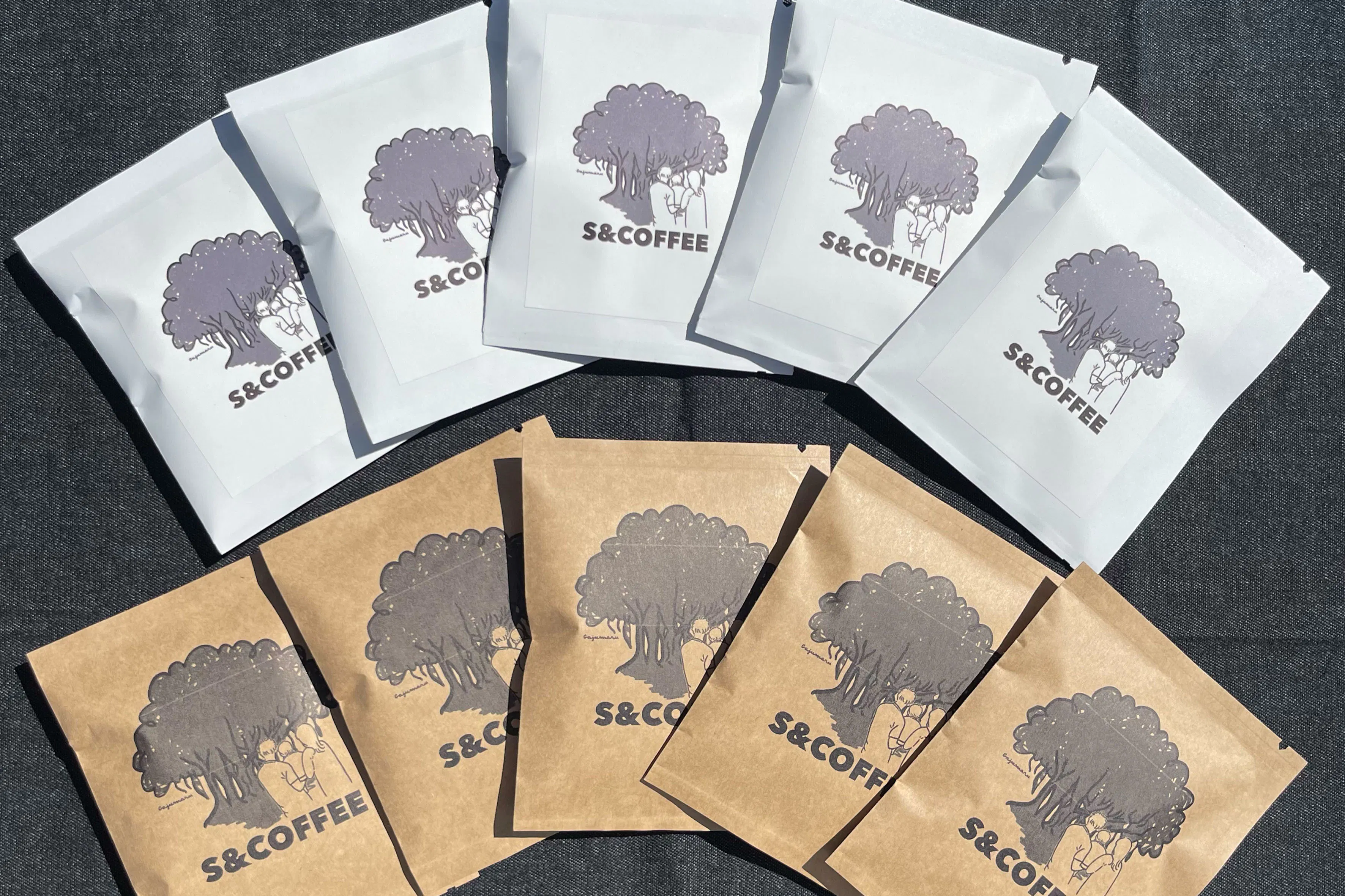 S&COFFEEのSは「薗田、瀬戸内、サッカー」の3つをかけ合わせました。イラストは瀬戸内町の於斉のガジュマルと私の家族をイメージしています。