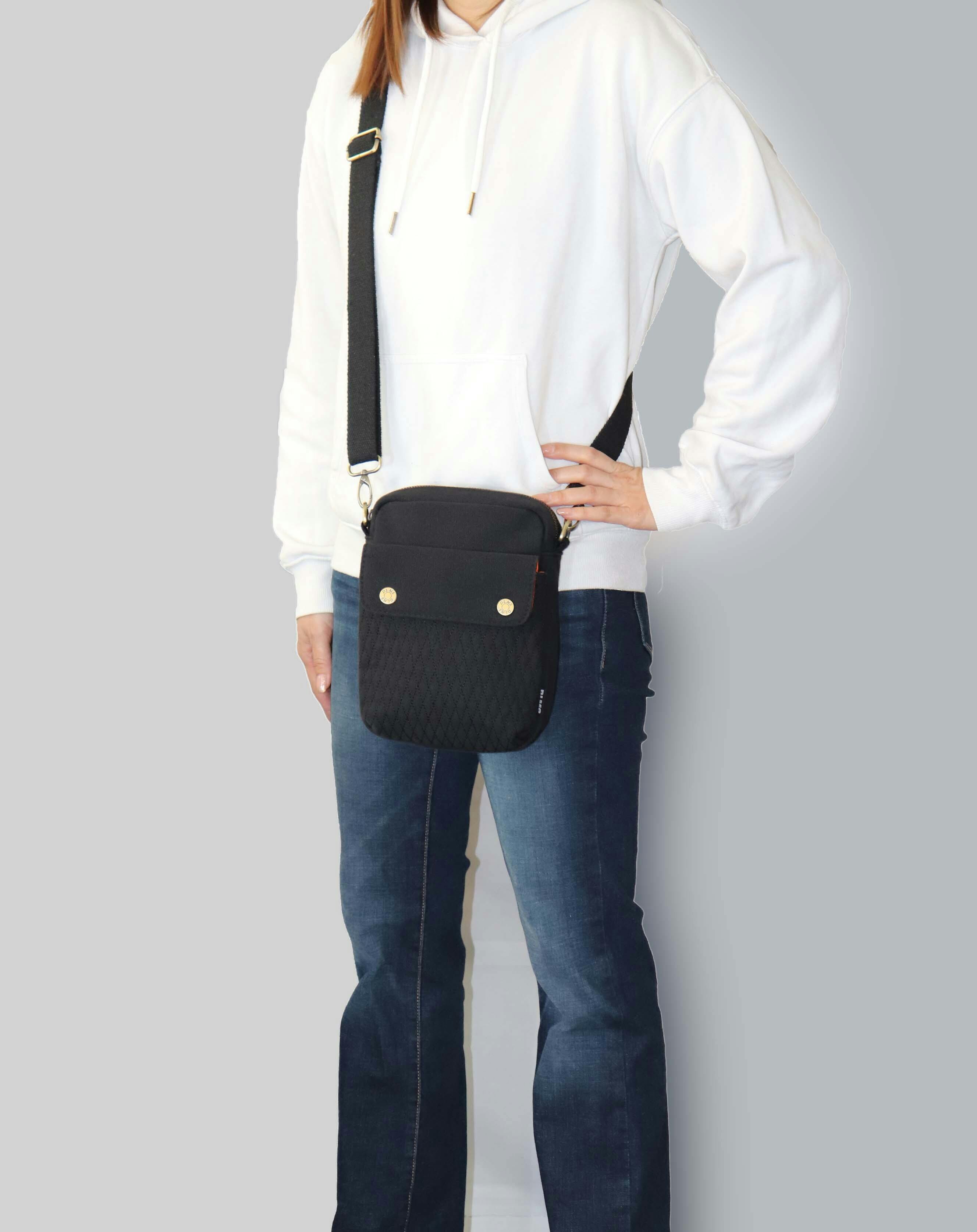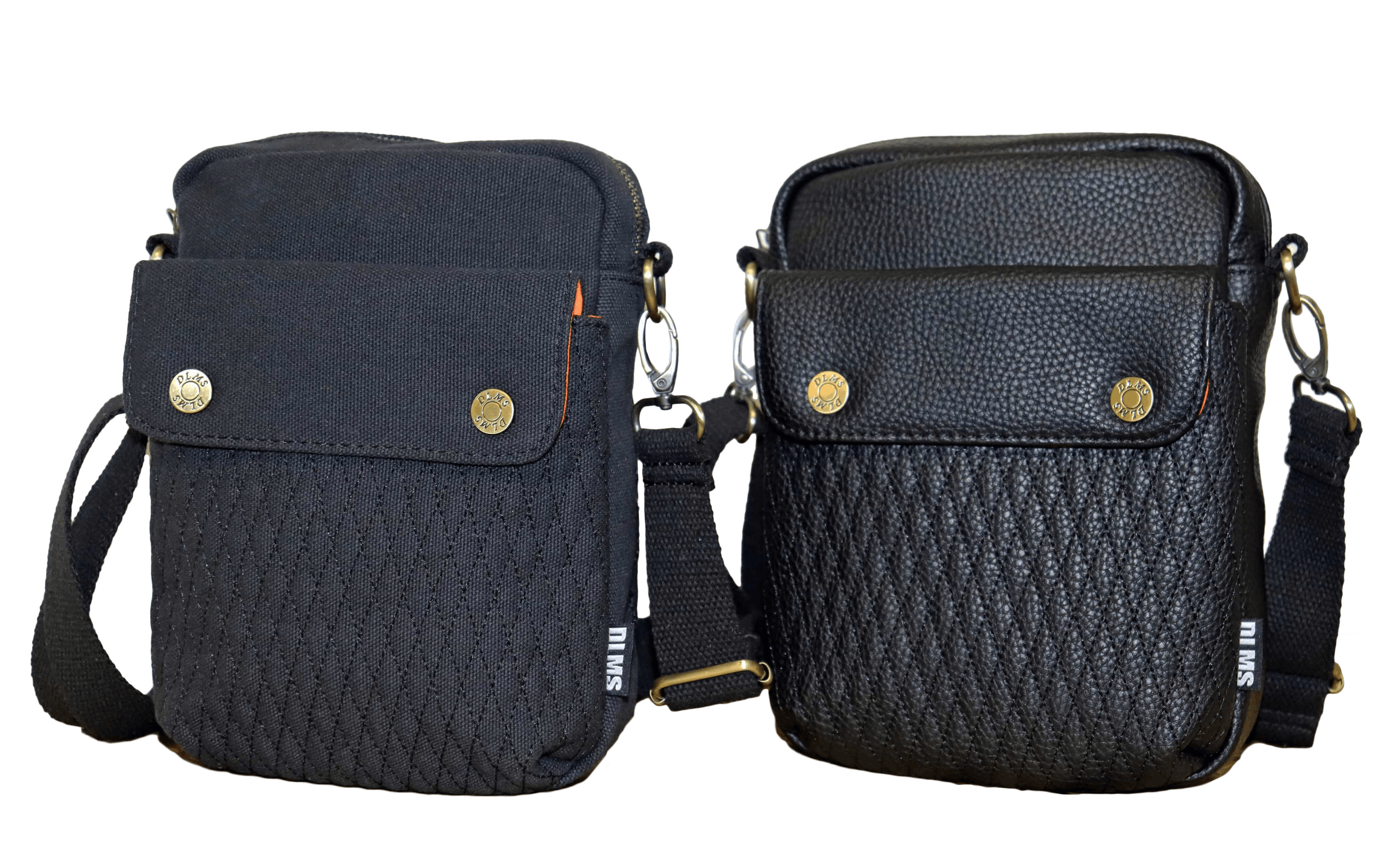 バッグの素材はヴィーガンレザー(マイクロファイバー革)とキャンバス(帆布)の2タイプのショルダーバッグ。