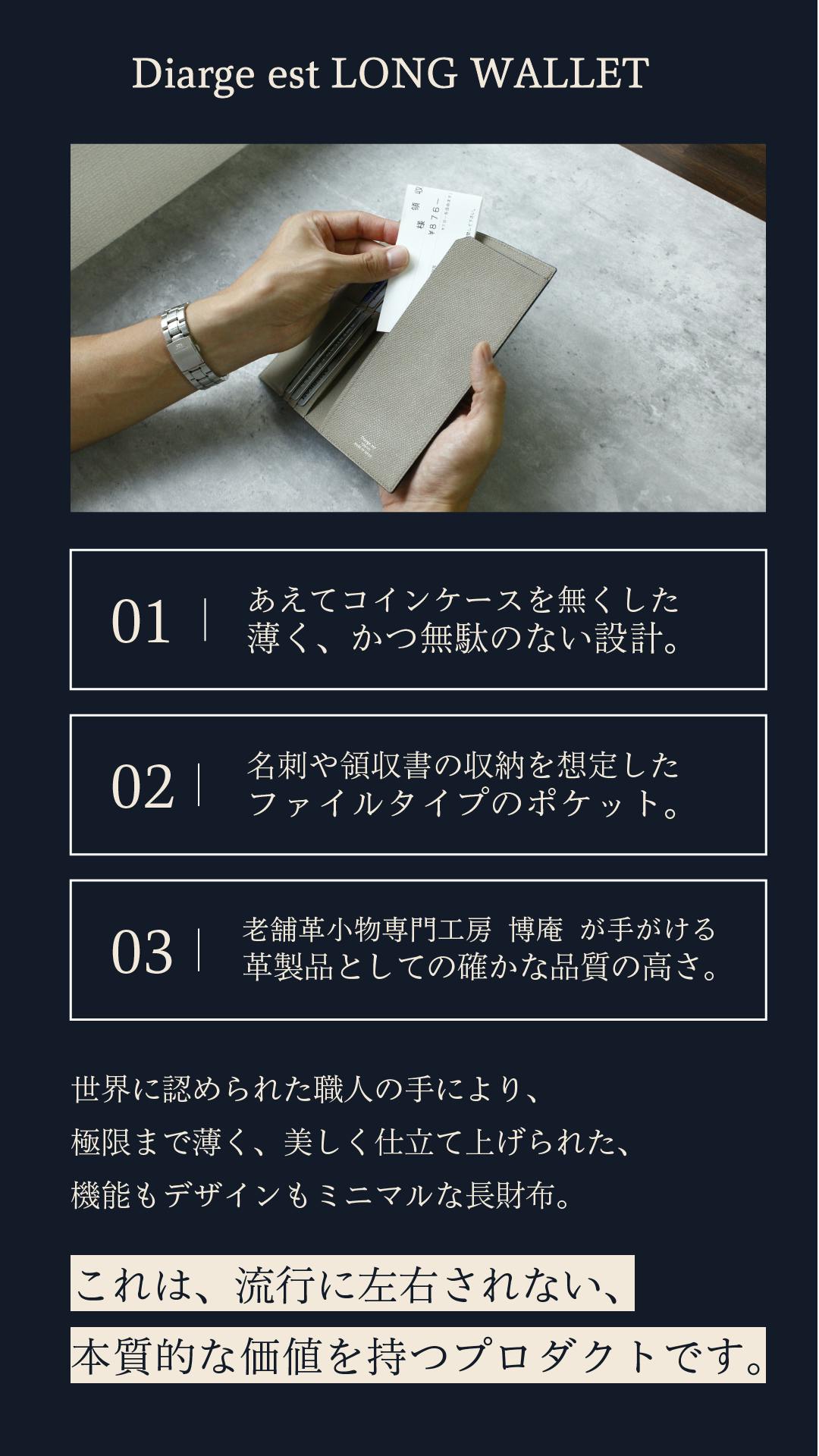 歴史ある確かな職人の技術と、物を使い続けることで生まれる価値を重要視するDIARGEの思いが掛け合わさり生まれたのが、このDiarge est LONG WALLET です。