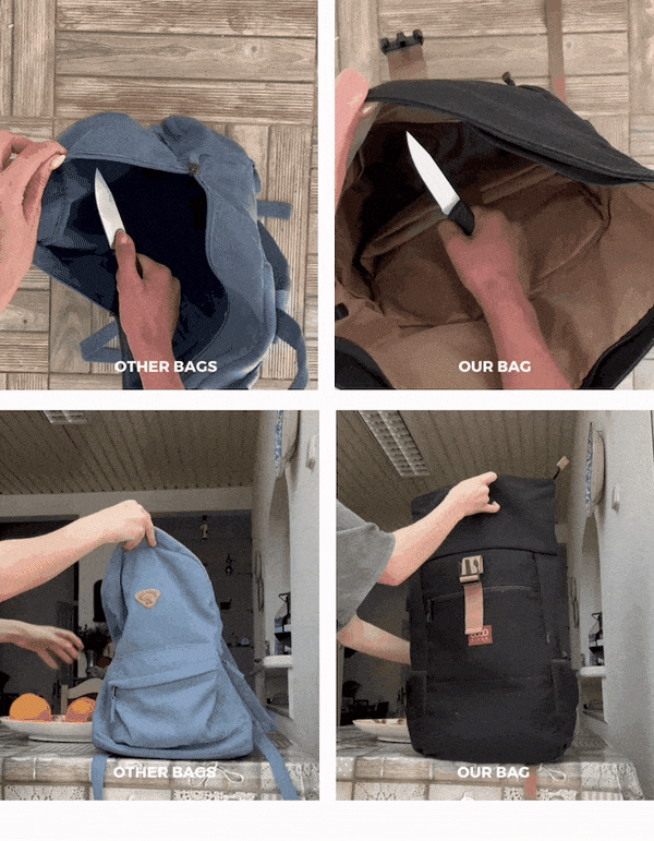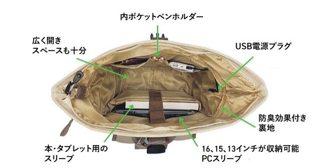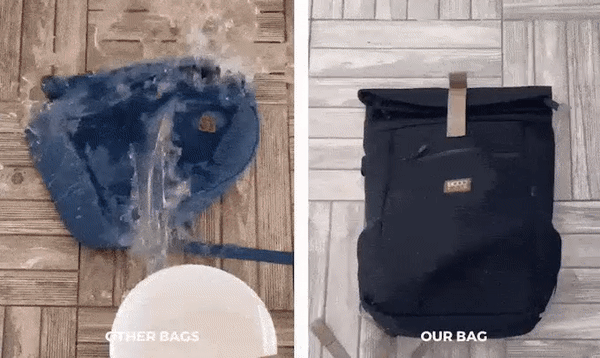 外側の麻生地は液体やほこりをはじくバイオワックスでコーティングしてあります。内側は防水仕様。つまり二重の防水機能で、突然の雨や落水といったトラブルから、あなたの大切な荷物を守ります!