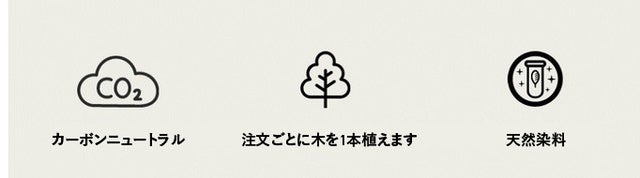 化石燃料に依存しない天然ヘンプ生地を、天然染料で丁寧に仕上げています。そして1つ注文されるごとに木を1本植えています。つまり、商品を購入するだけで、カーボンニュートラルに貢献できます。