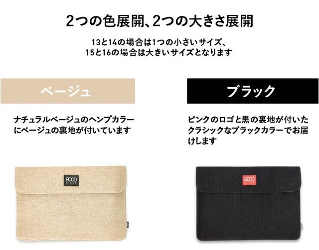 色は黒とベージュがあり、サイズは13〜14インチ用、15〜16インチ用の2種類あります。