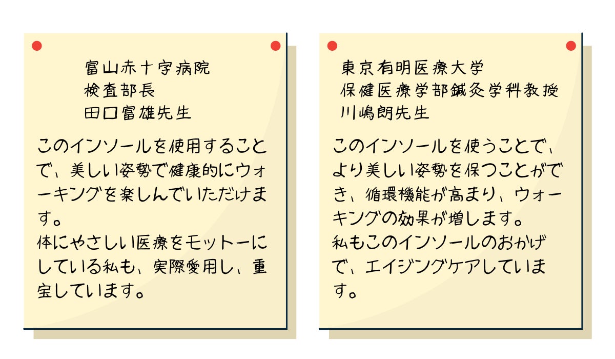 通常のモノとは違い、このインソールは、かかとに貼るめずらしいタイプでした。しかも簡単で小さいモノなのに、靴に付けると違いを感じることができたため衝撃を受けたのです。