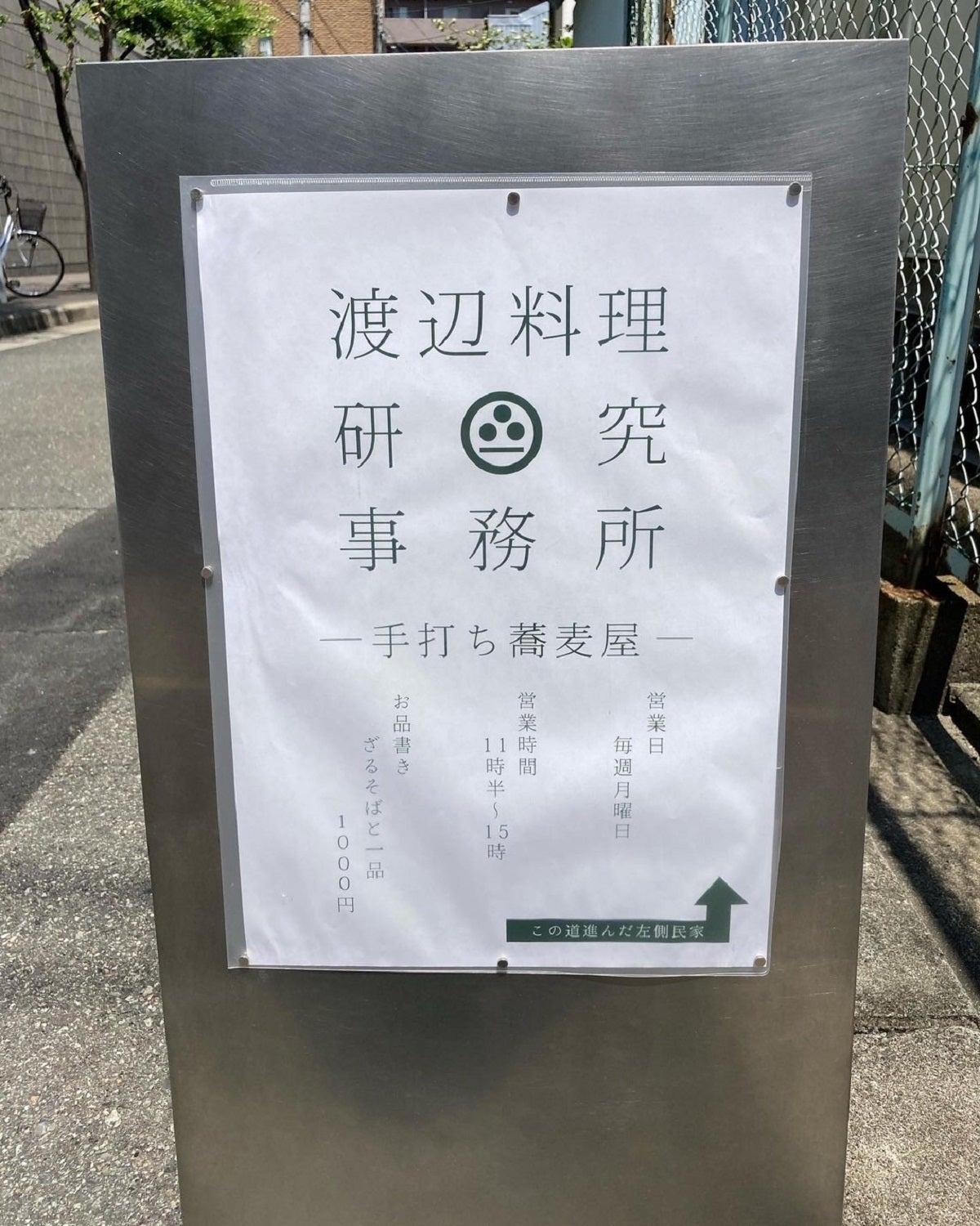 渡辺料理研究事務所は、大阪の南森町にある小さな手打ち蕎麦屋です。普段は食品開発の仕事をしながら、毎週月曜日だけの限定で営業しています。
