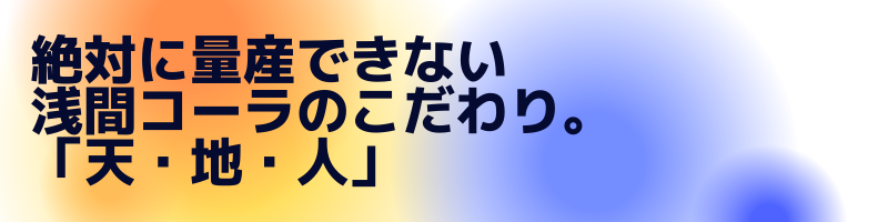 文化の均質化を象徴するコーラ。しかしグローバルに広がった「コーラ」だからこそ、あえてそこに浅間山やその麓に集う人たちの力を結集し、ローカル性を追求してみることで、Global+Local=Glocal(グローカル)な商品として、地域から世界へ直接発信する可能性を秘めている。