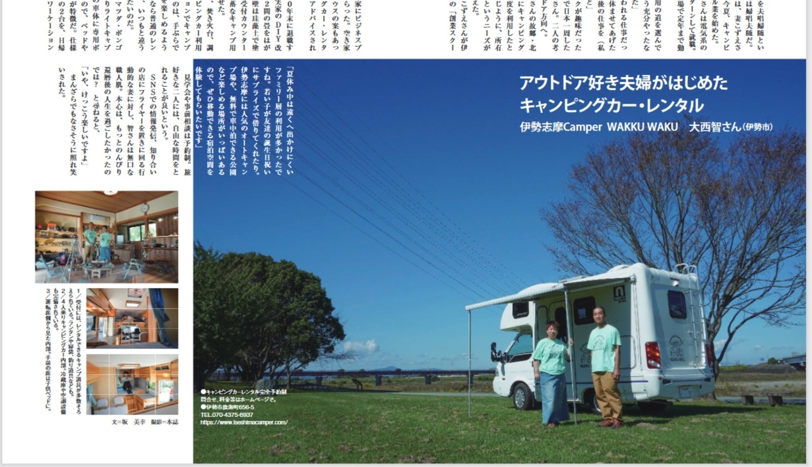 昨年から伊勢で旦那さんとキャンピングカーレンタル、キャンパーガイドを始めました。