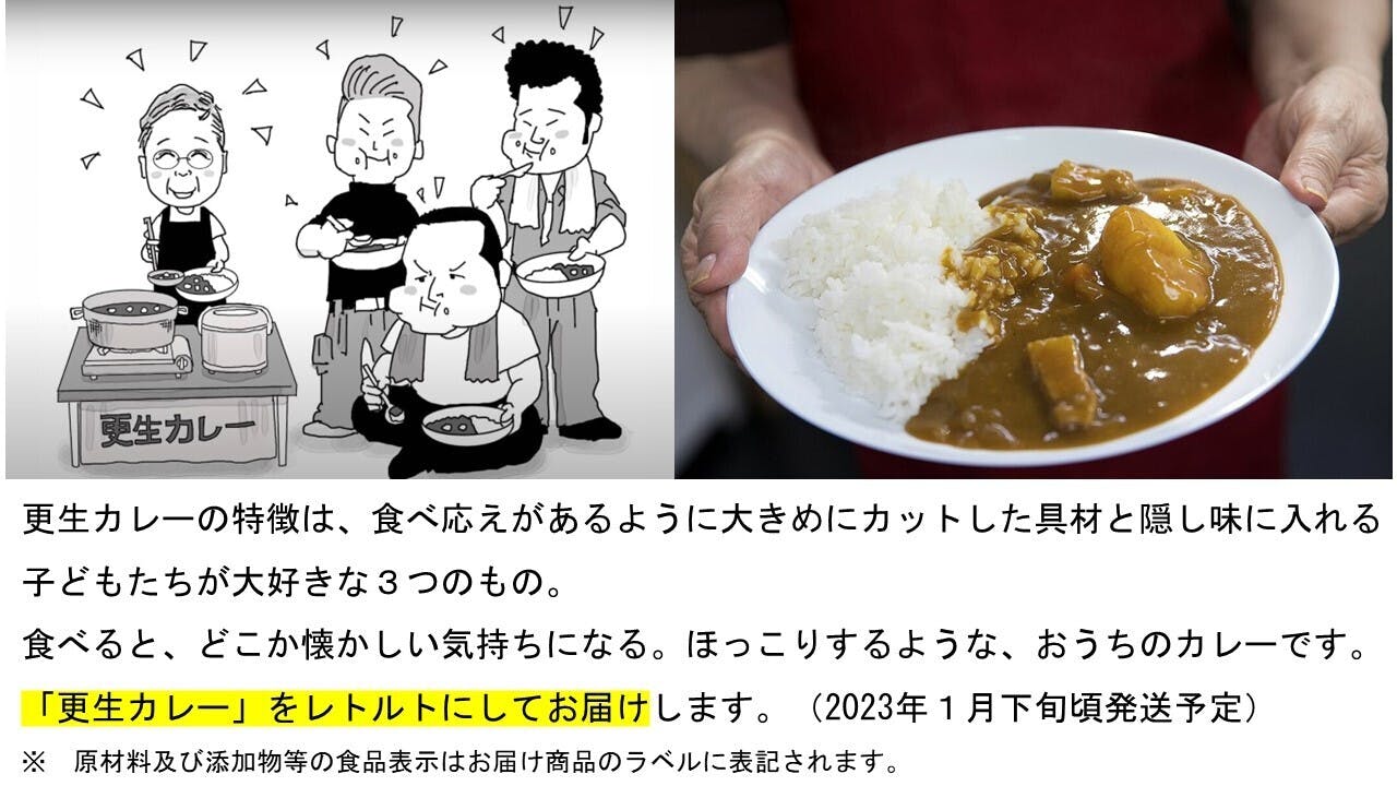 そうした思いから、今回、更生カレーをレトルト化することにしました。