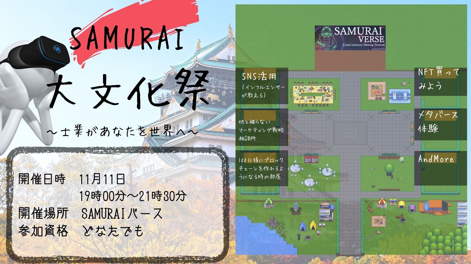 このビジョンの元、まだまだメタバースそのものを体験したことのない方や、世界に向けたプロジェクトのお披露目の場を企画しました!それが、【SAMURAIバース】です!