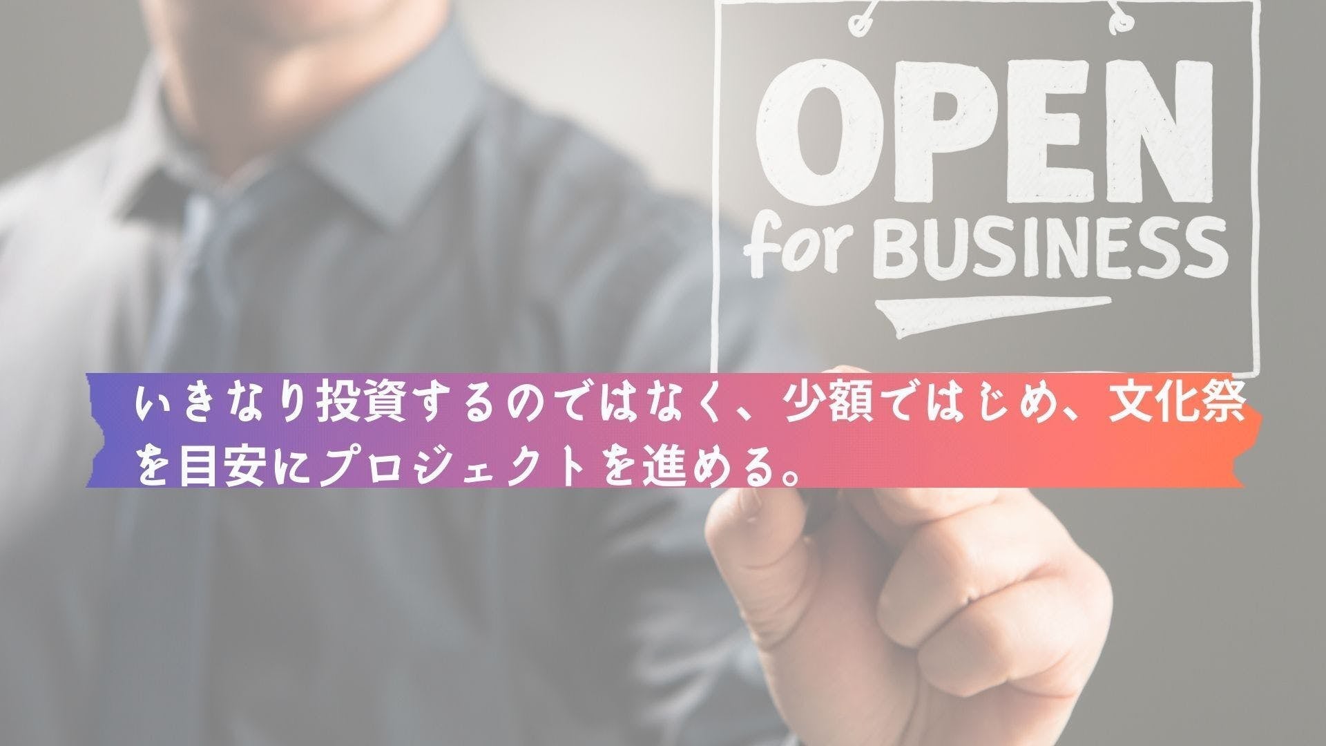 まずは「文化祭」として当イベントを開催し、まずプロジェクトを披露することを目標に運営します。