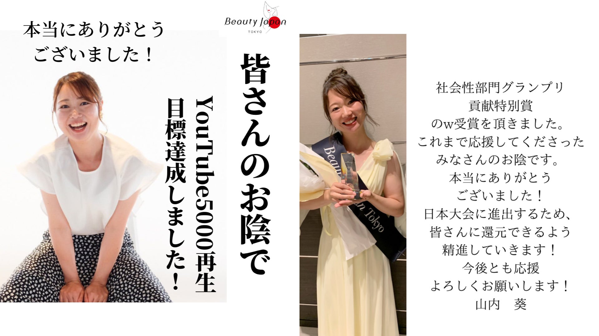 このたび、社会で活躍できる女性を発掘してキャリアを支援する大会『BeautyJapan(ビューティージャパン)』の東京エリア大会でSociality賞グランプリに輝きました。